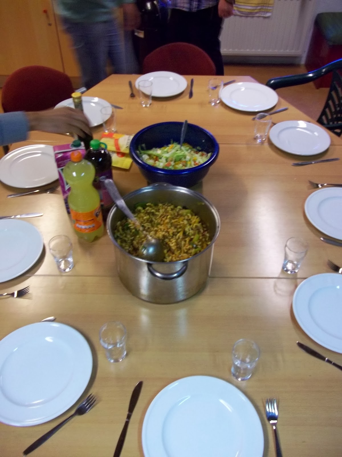 Quando retornamos ao alojamento, o almoço estava sendo preparado pelo pastor Huub e SURPRESA, o almoço não era PÃO! Uhuuu! Ele preparou uma deliciosa macarronada e uma salada pra gente, muita gente ficou feliz com a refeição ‘diferente’ e tudo foi aprovado com louvor! J E não parou por aí, ainda tivemos uma sobremesa que era um mix de creme de baunilha com yogurt (de gosto amargo) e cerejas em calda, huuummm lekker lekker!! Hahaha