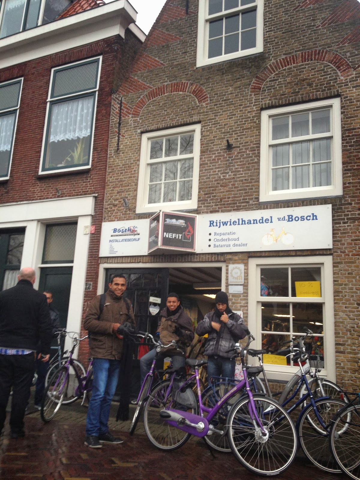 Antes de sair da casa de Toos fomos orientados a nos agasalhar bem, só que me agasalharam demais até e fiquei parecendo uma mistura de astronauta com pingüim de tanta roupa que colocaram em mim kkkkkk e em seguida fomos pegar nossas bicicletas. Gente, aqui só tem bicicleta pra quem tem mais de 1,60 de altura, pra quem tem menos como eu só lamento, as bicicletas são altas viu..