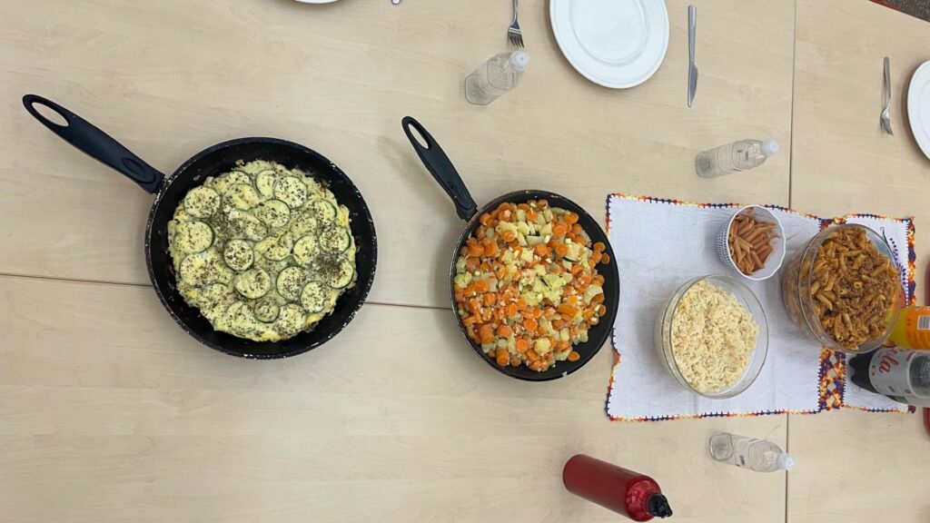 Nosso jantar foi ala brasileiríssimo, novamente comemos macarrão com carne moída, uma abobrinha deliciosa, legumes, e um arroz “risoto”, ao som de Raça Negra, Jonas e Artur dançarão um samba jamais visto.