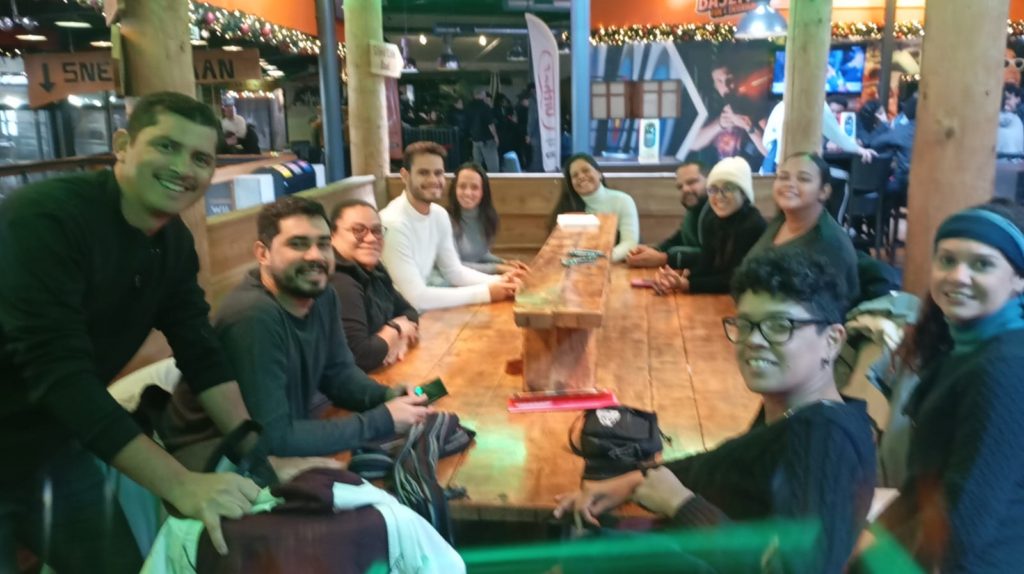 Alguns pareciam até que já tinham tido contato com esse esporte, ao finalizar nosso tempo, fomos todos tomar um chocolate quentinho para aquecer e voltarmos para Schipluiden. No salão paroquial, tivemos o nossa segunda avaliação do intercâmbio, momento esse muito importante.