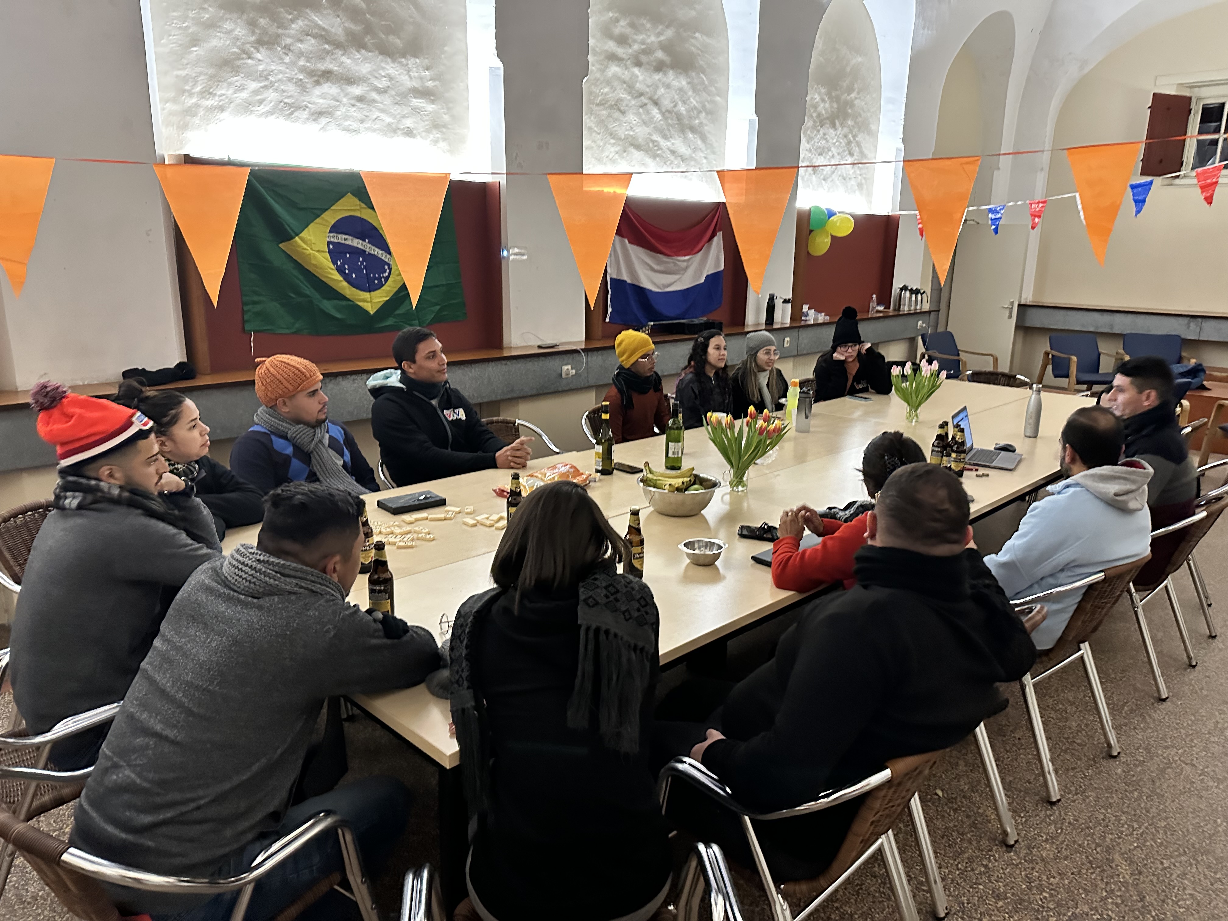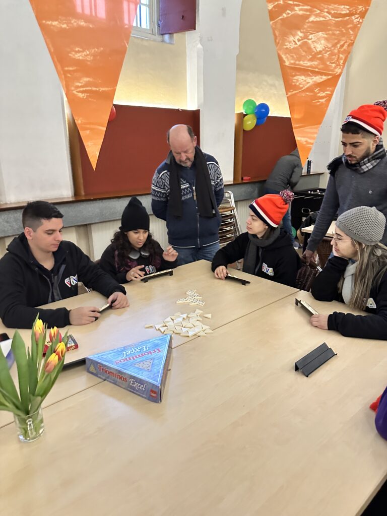 A tarde foi de descontração com jogos tradicionais que os Holandeses amam, Triominos e Rummikub. Para alegrar ainda mais nossa tarde, recebemos a visita de duas jovens do Vamos 2023, Eline e Myrjam Boks.