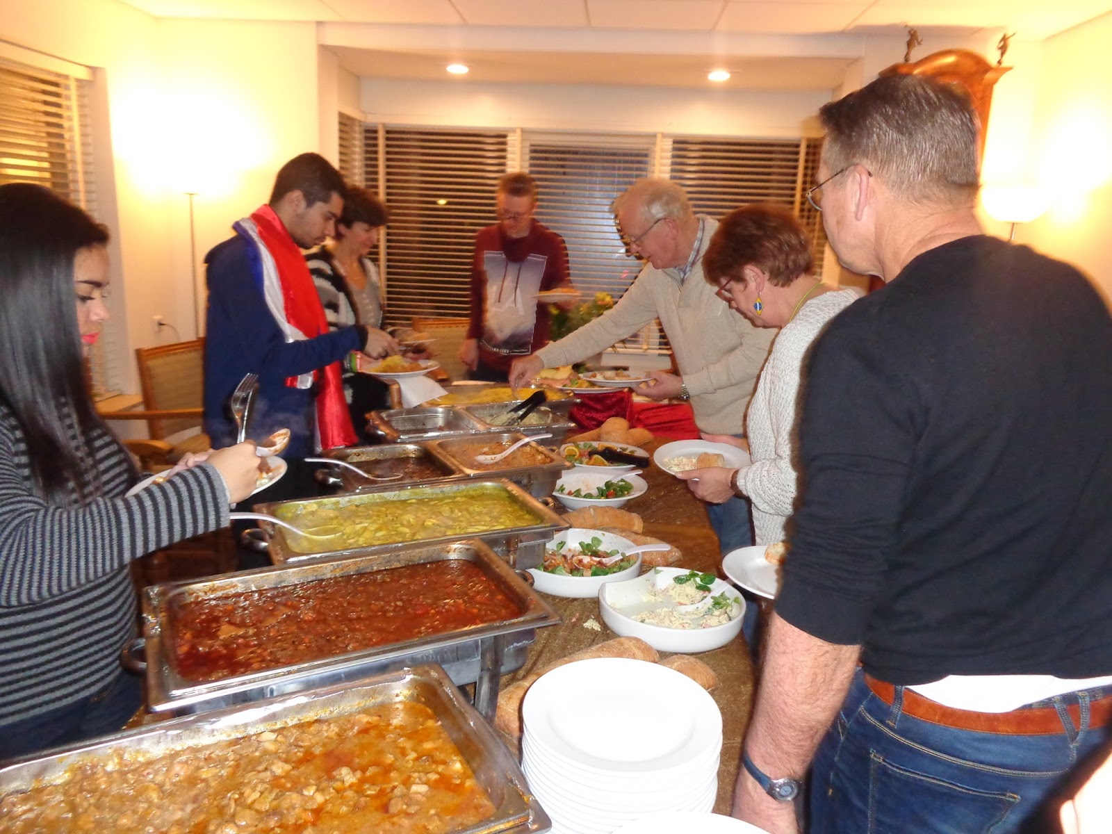 Chegamos em casa cedo porque era hora de fazer as malas. Às 18hs nos encontramos no salão paroquial de Den Hoorn para o jantar de despedida, um suuuuper jantar!!! Depois foi o momento das homenagens e das lágrimas. Fizeram uma selecão de algumas fotos dos intercambistas com as famílias e lugares que visitamos, teve música ao vivo, presentes do Vamos para todos os Vivas, uma noite linda! Estiveram presentes as famílias de Oudewater e Schipluiden, então dá para imaginar a emocão do reencontro.