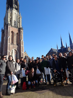 Sei que as famílias, amigos e amores não aguentam mais saber de notícias só pelo blog. Pois é, o tempo de intercâmbio está acabando e amanhã o grupo volta para o Brasil. Hoje o dia estava lindo, com sol (mas aquele sol que não esquenta – só quem veio aqui sabe a sensacão que é), mas estava lindo mesmo, um bom dia para se despedir da Holanda! Fomos de fiets (bicicleta) para Delft, pois hoje era o dia dos meninos gastarem o seu suado euro hahaha como a diferenca de câmbio está grande, então muitos disseram que vocês vão ter que se contentar com chaveirinhos hahaha tivemos duas horas para as compras e depois fomos fazer um lanche na praca de Delft (momento engracado do dia que Dayane pediu para contar: na hora do lanche fomos a um café para lanchar. Todos os lugares que fazem refeicões aqui investem em um ambinete bem aconchegante e quentinho, geralmente com velas. Aí, Dayane com seu jeitinho brasileiro, levanta-se da mesa e fica conversando e de repente vemos uma fumaca saindo perto dela e aquele cheiro de frango depenado no fogo kkkk minha gente, ela queimou o cabelo com a vela que estava na mesa!!! hahaha mas foi só um pouquinho, o suficiente para rimos por uns 10 minutos hahaha).