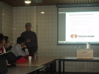 A programacão começou no banco de alimentos (Voedselbank). O Voedselbank teve inicio em 2002 atendendo cerca de 30 famílias e hoje é o maior ponto de coleta e distribuicão de alimentos da Holanda. Este tem como objetivo distribuir cestas de alimentos para populacão com baixa renda. Os alimentos são adquiridos através de doações de empresas, doação de pessoas, etc. E um dos pontos, para nós, considerado mais importantes: todos os colaboradores da instituição são voluntários, usam de seu tempo livre para fazer este trabalho… Sim gente, não parece, mas a Holanda também tem suas dificuldades! Pessoas precisam de ajuda, passam por necessidades, enfim… Foi muito bonito, ver uma enorme quantidade de pessoas se disponibilizarem para ajuda-las.